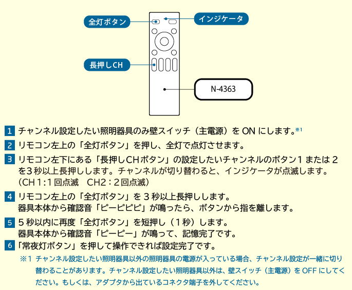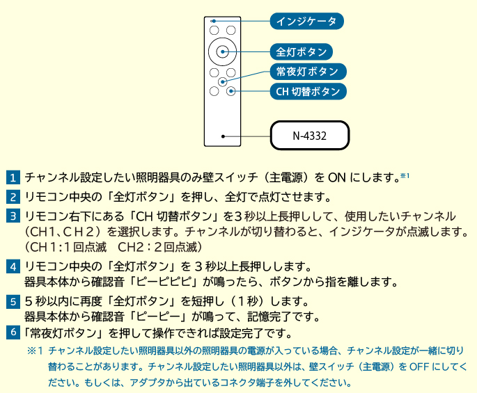 照明器具のリモコンチャンネル設定方法