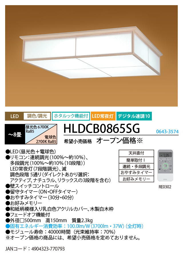 - 制御機能:リモコン/連続調光:100%~約10%、多段調光:100%~約10%(10段階)、LED常夜灯(7段階調光)、滅/調色段階5通り/壁スイッチコントロール