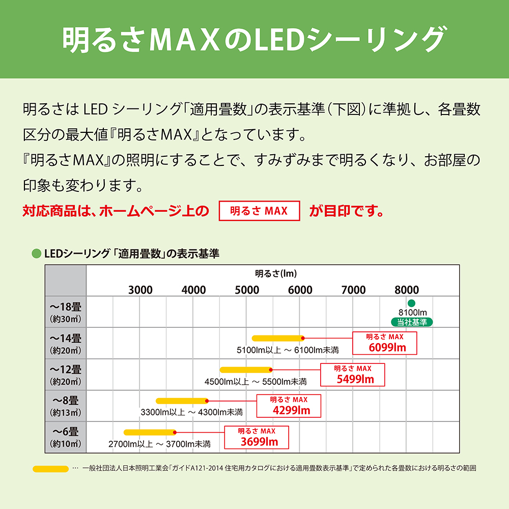 - 制御機能:リモコン/連続調光:100%~約10%、多段調光:100%⇔約70%⇔約50%⇔約30%⇔約10%、LED常夜灯、滅/壁スイッチコントロール