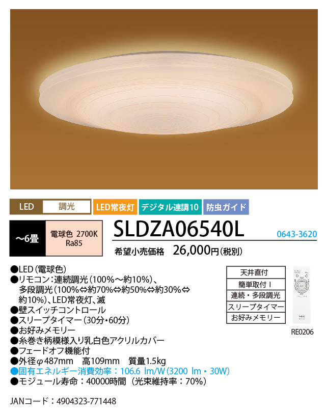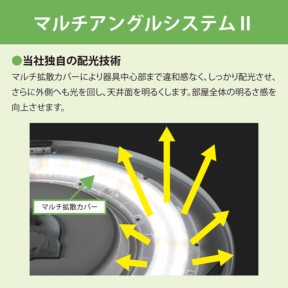 - 制御機能:リモコン/連続調光:100%~約10%、多段調光:100%⇔約70%⇔約50%⇔約30%⇔約10%、LED常夜灯、滅/壁スイッチコントロール