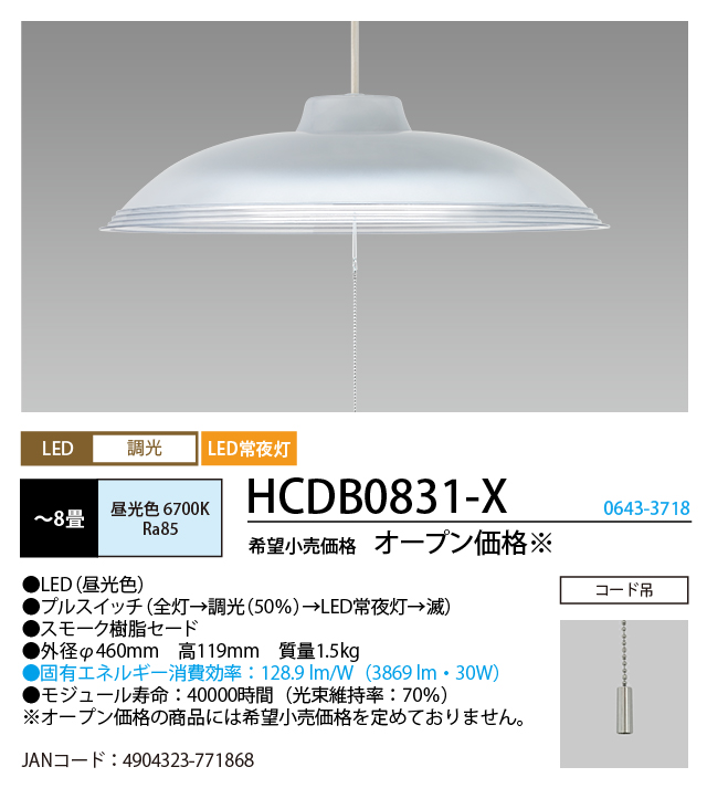 - 制御機能:プルスイッチ:全灯→調光(50%)→LED常夜灯→滅