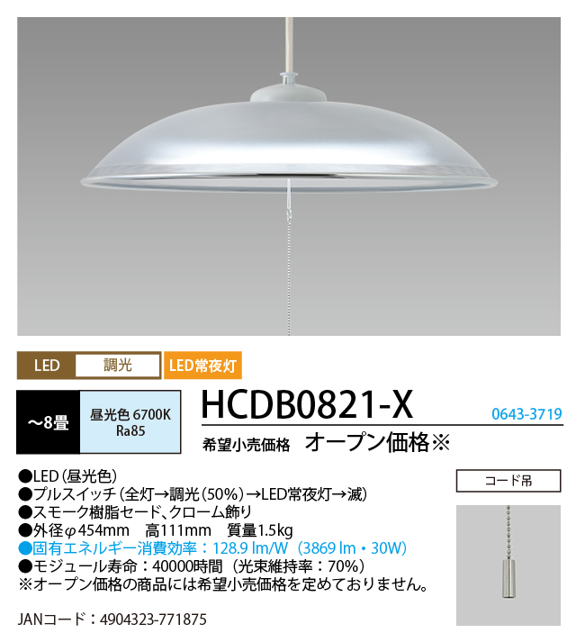 - 制御機能:プルスイッチ:全灯→調光(50%)→LED常夜灯→滅