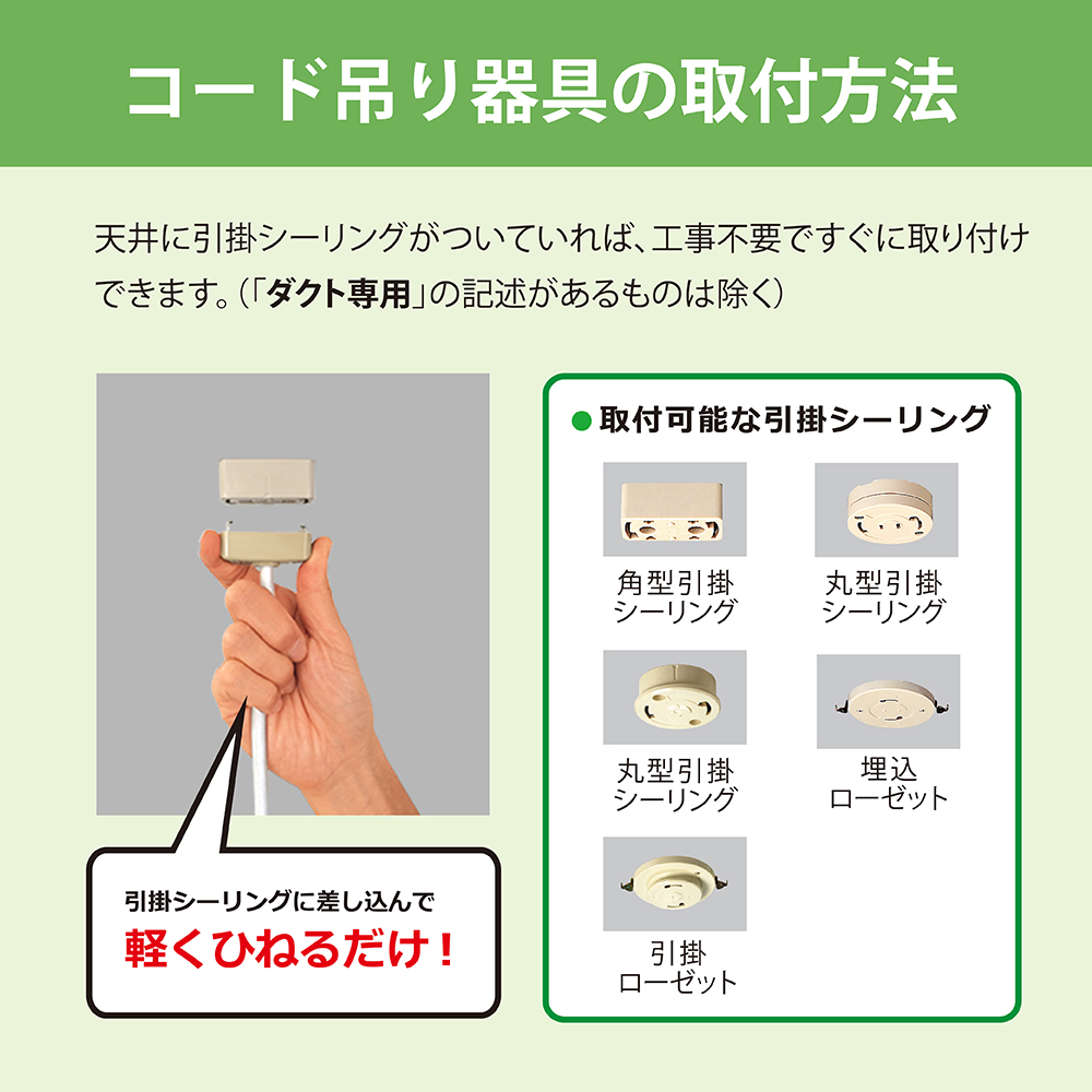 - 制御機能:プルスイッチ:全灯→調光(50%)→LED常夜灯→滅