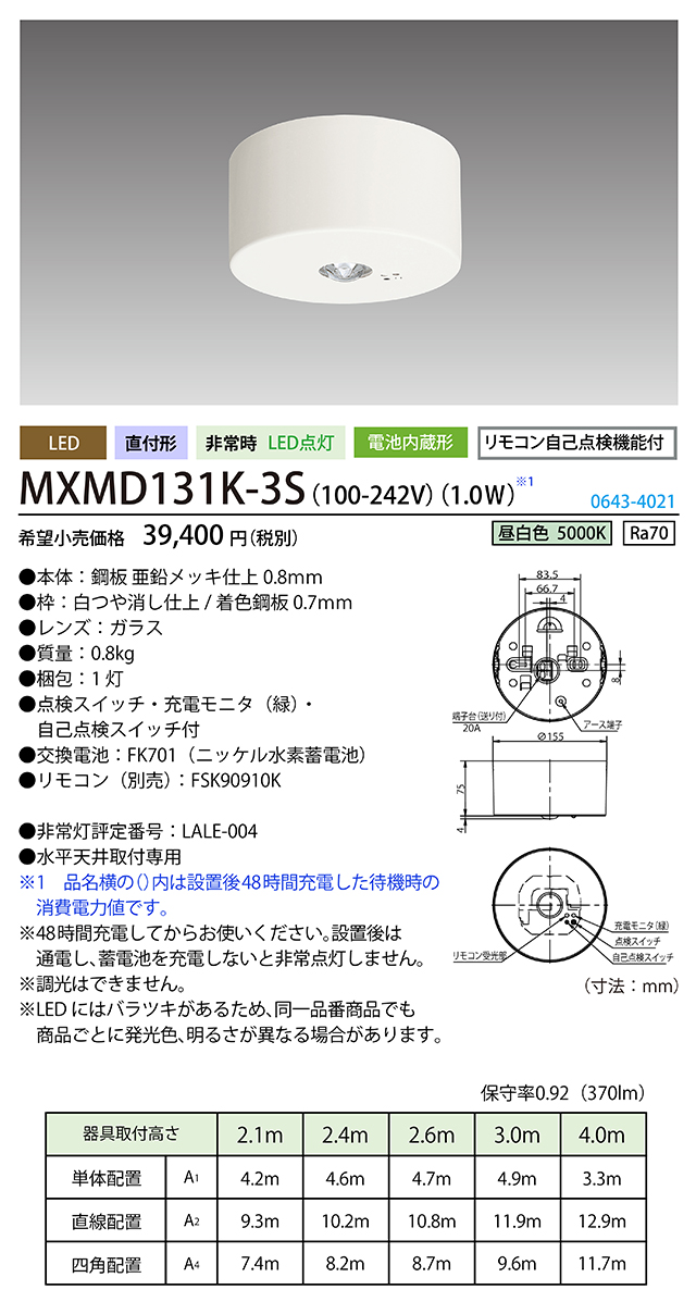 - 48時間充電してからお使いください。設置後は通電し、蓄電池を充電しないと非常点灯しません。