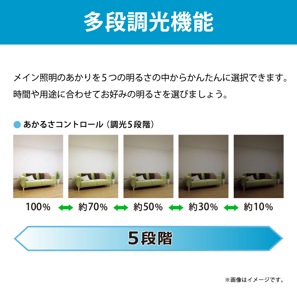 - 制御機能:リモコン:多段調光(5段階)、LED常夜灯(3段階調光)、滅/壁スイッチコントロール