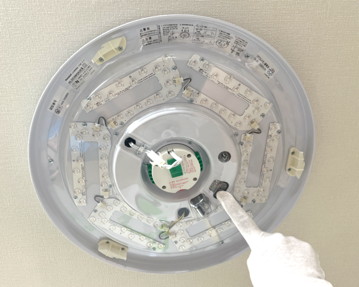 1)防災用LEDシーリングのカバーを左に回転させて、取り外してください