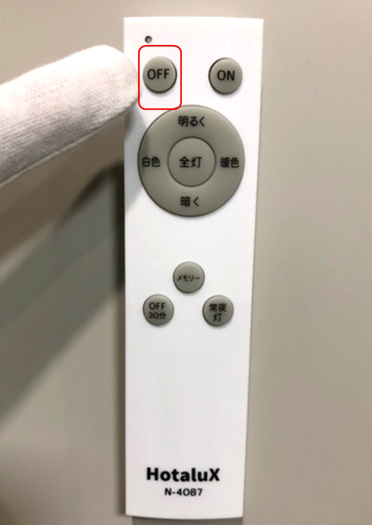1)リモコンで防災用LEDシーリングの照明をOFFにしてください