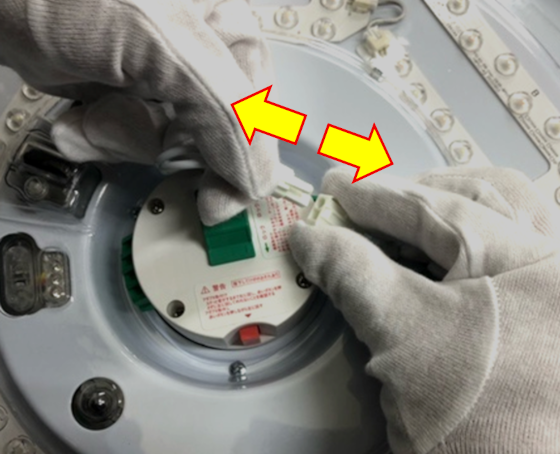 5)防災用LEDシーリング本体のコネクタとアダプタ側コネクタとの接続を外してください