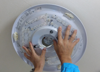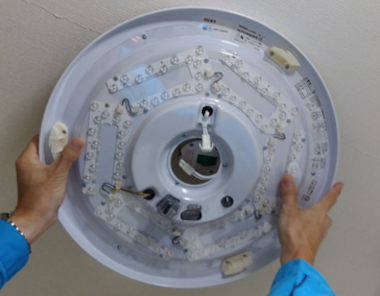 9)取り外した防災用LEDシーリング本体のLEDが、非常点灯することを確認してください
